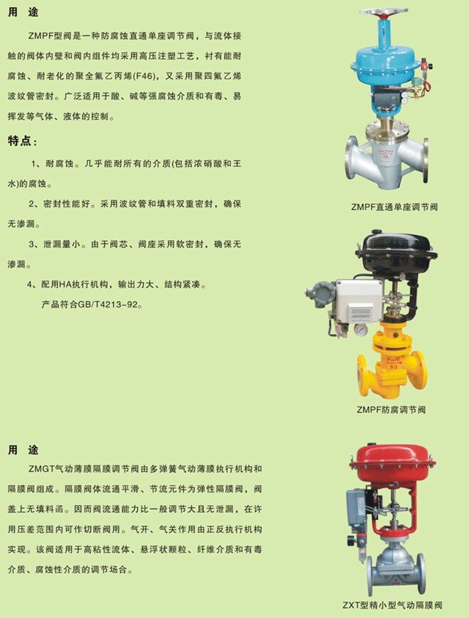 ZMPF氣動(dòng)襯氟調(diào)節(jié)閥、ZMGT氣動(dòng)隔膜閥